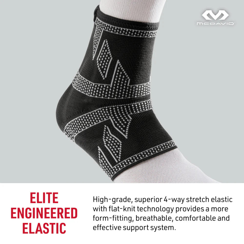 The McDavid ELITE Engineered Elastic™ Ankle Sleeve is ergonomically shaped for enhanced stability and support, providing advanced compression and fit without heat retention to support ankle pain relief associated with tendonitis, arthritis and other ankle conditions and injuries.